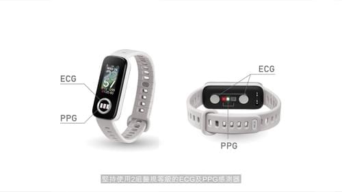 - 錶面、錶背都有三極片單導程微電感測器與 PPG 生物光學感測器,可記錄身體狀況